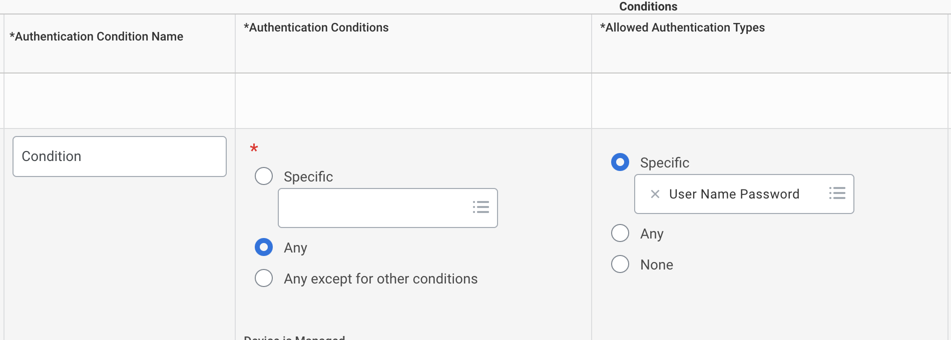 - Search for Manage Authentication Policies