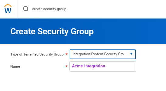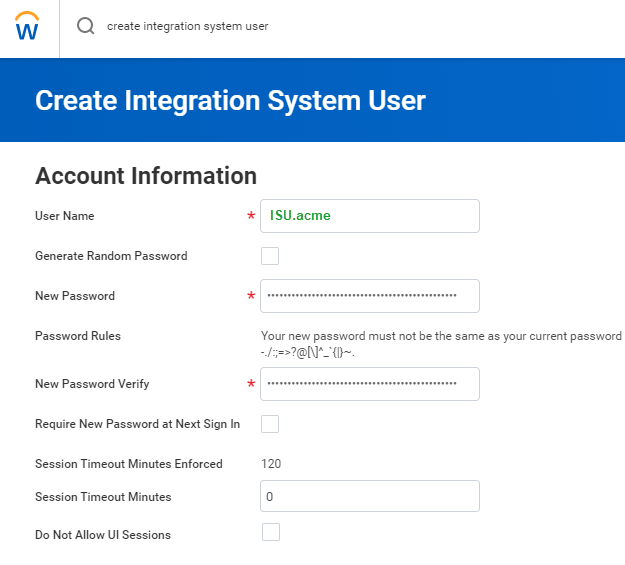 - In the Workday search bar, type Create Integration System User