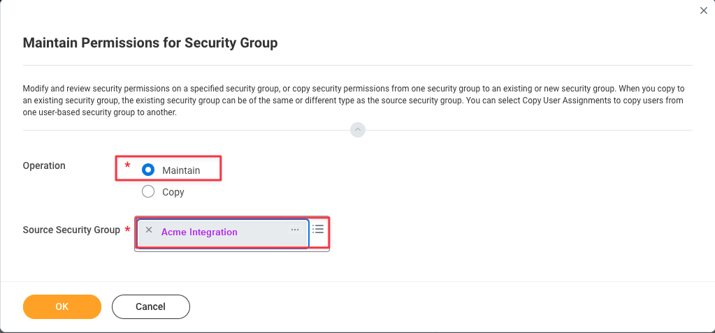 - Select Integration System Security Group (Unconstrained)