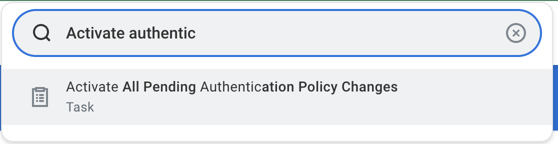 - Search for Activate All Pending Authentication Policy Changes